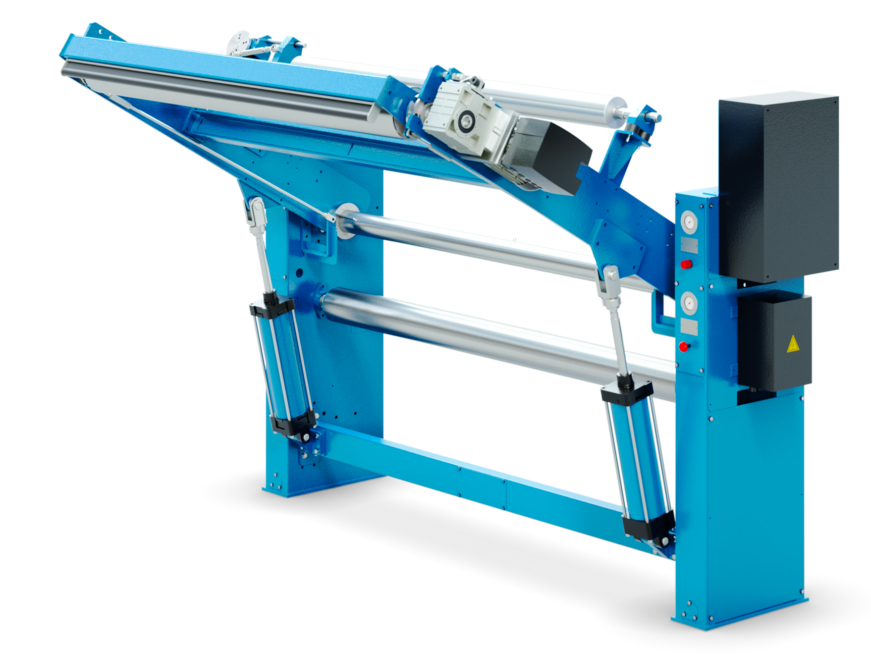 对于任何纺织品生产设备而言,都需要进料和出料系统,它们的任务是从堆垛或者轮轴上取用纺织品幅面,扩幅并且以精确的位置提供给下一道工序。
