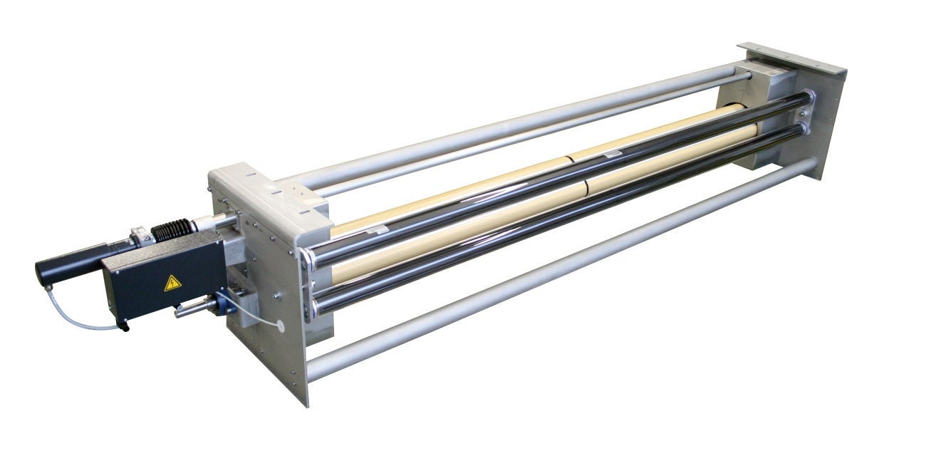 不锈钢规格的幅面导正系统,用于潮湿和干燥运行的编织品和针织物,机器速度最大 100 m/min,采用电动调节驱动器